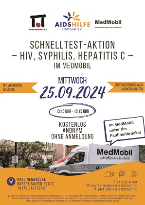 Schnelltest-Aktion – HIV, Syphilis und Hepatitis C (HCV) im MedMobil in Kooperation zwischen der Ambulanten Hilfe e.V. und der AIDS-Hilfe Stuttgart e.V.