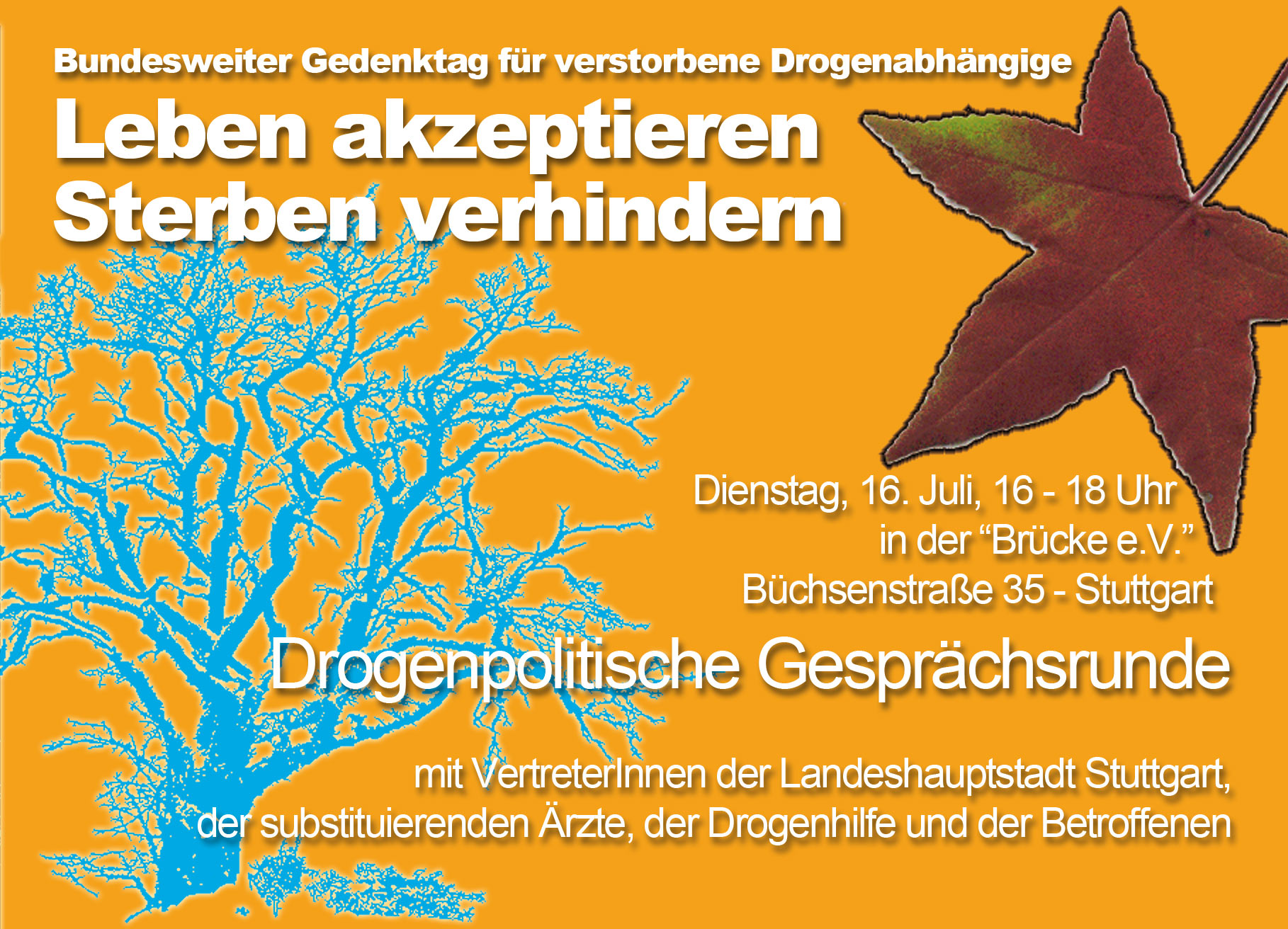 Der Flyer zum Stuttgarter Drogentotengedenktag am 21. Juli 2013 findet sich hier zum Download. [ca. 670 KB]